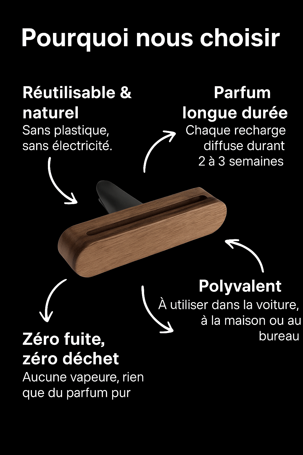 Nos recharges sont conçues pour diffuser une odeur douce, équilibrée et non agressive, parfaite pour les trajets ou les pièces fermées.